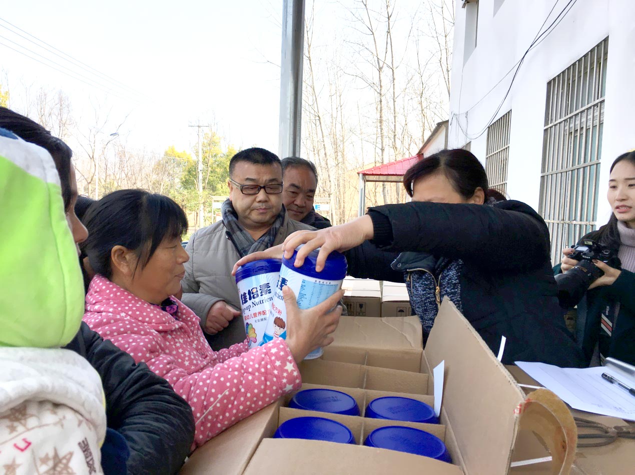 為貫徹落實“百企幫百村”扶貧項目,踐行“扶真貧、真扶貧”的承諾,2016年12月27日,福格森副董事長沙俊奇先生帶領員工攜手武漢經(jīng)開區(qū)招商局、民政局、扶貧辦、工商聯(lián)、宣傳部一行領導前往武漢市蔡甸區(qū)消泗鄉(xiāng)九溝村,給當?shù)刎毧嗉彝和腿ケ姸喔8裆a(chǎn)品——佳培素嬰幼兒營養(yǎng)配方粉和小兒益生菌。諸多村民在接受到福格森的暖心捐贈后,不禁喜笑顏開。